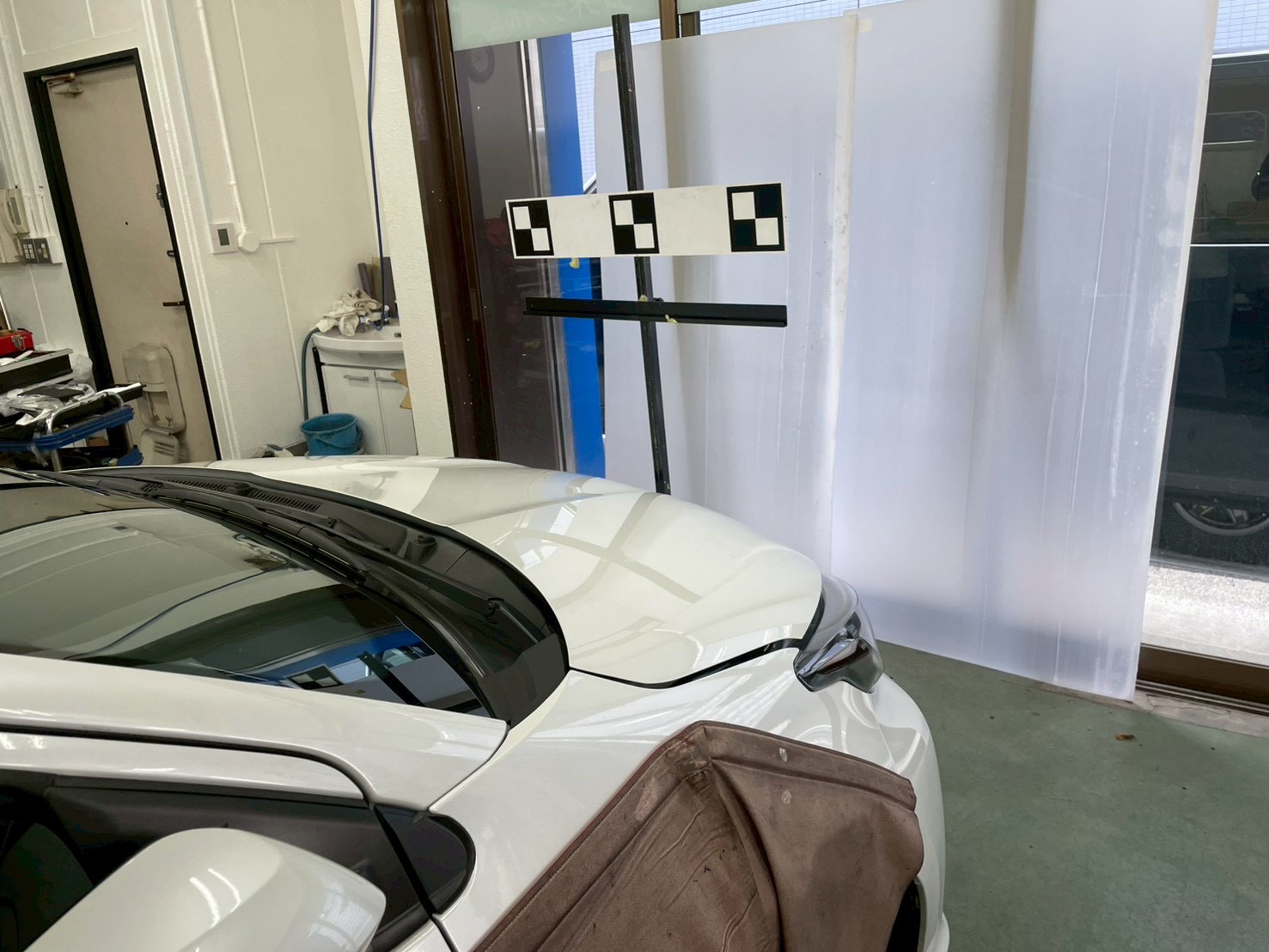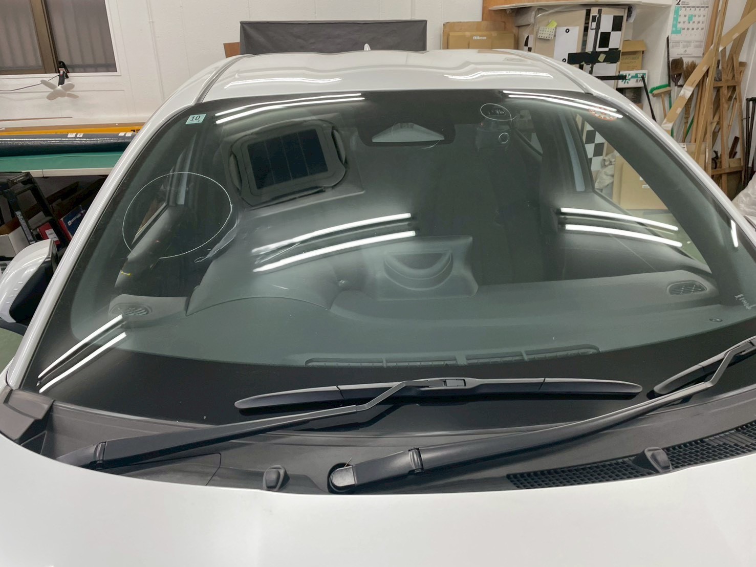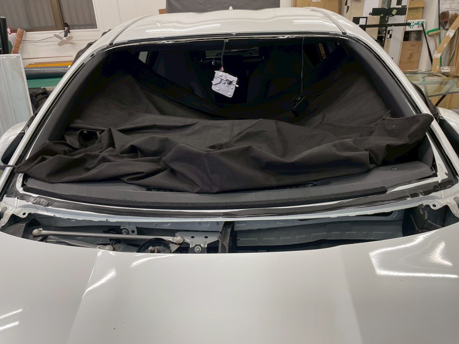 フロントガラスをはめたのち、エーミングの準備をします